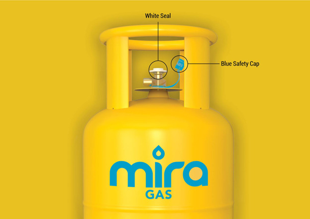 MiraGas cylinders come with a white valve seal indicating they are freshly filled and untampered, along with the signature blue safety cap that keeps the valve securely sealed. Households are encouraged to look for both features when receiving a new cylinder to ensure authenticity and safety.