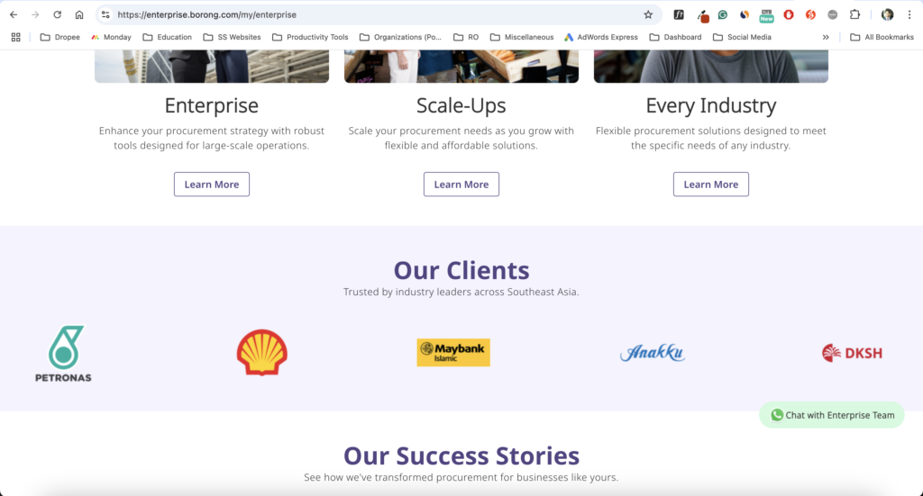 - Oil & Gas (O&G) Procurement – Borong has secured an exclusive procurement partnership with Shell, enabling digitised, streamlined supply chain and procurement operations within the energy sector.